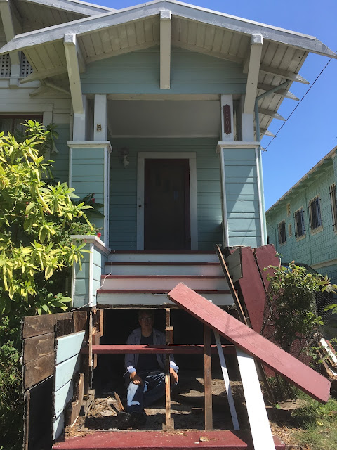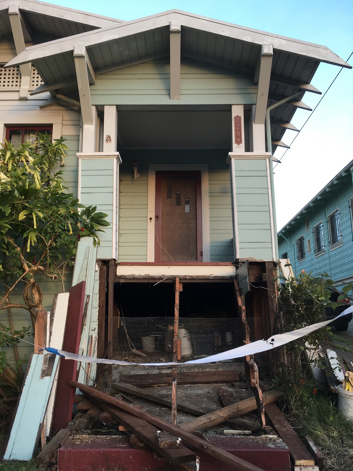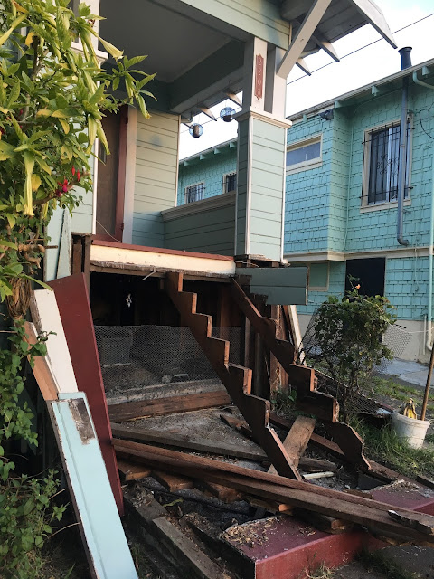 The problem wasn't just that the structure was a bit off-kilter.  It turns out that the porch suffered from both of the enemies of architecture:  water, and stupid choices.  The problems were a multiplication of both those factors.