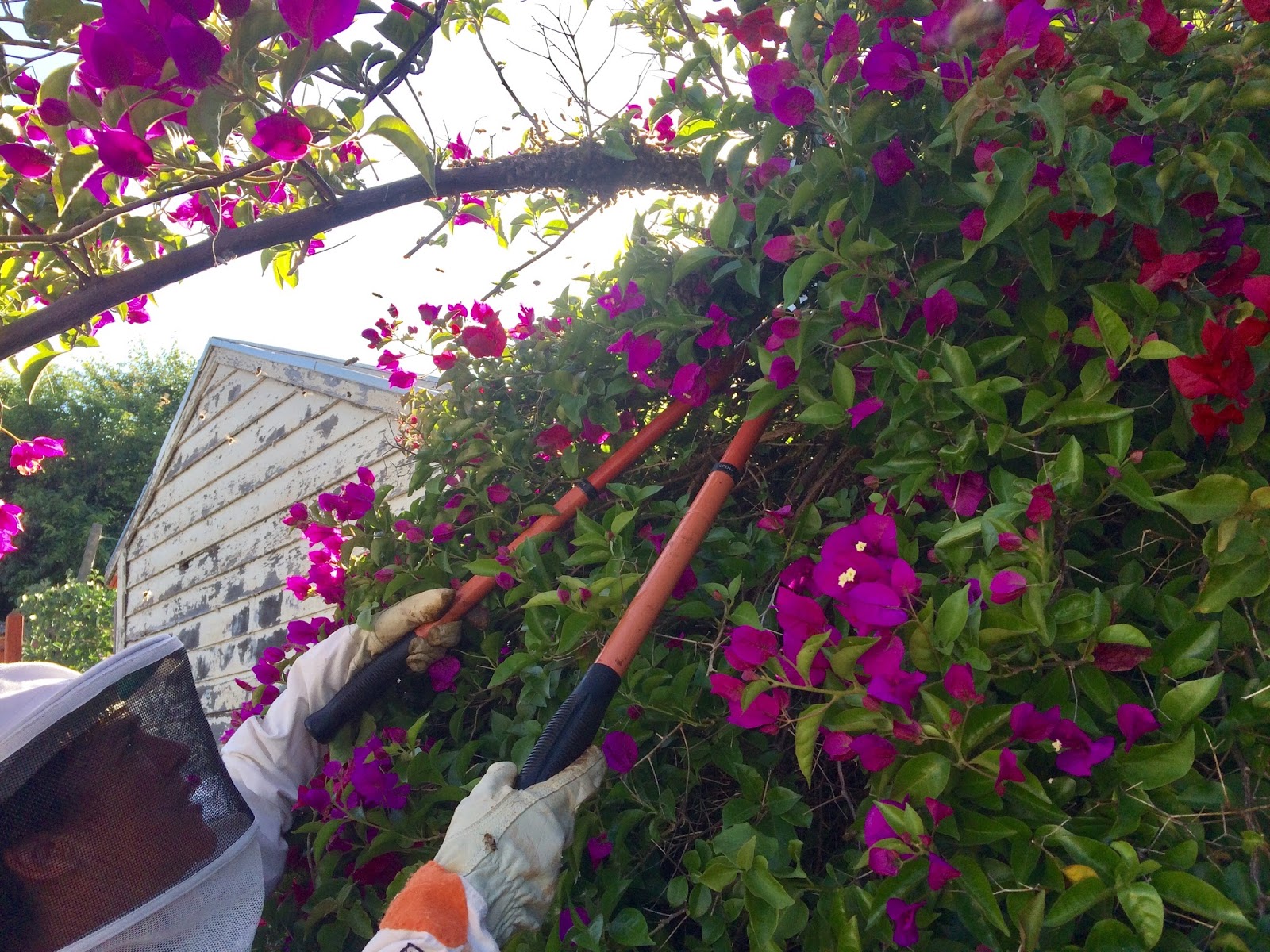 I try not to damage the plants the bees land on.  I did not chop off any large branches.  I was using those loppers because they have nice long handles.