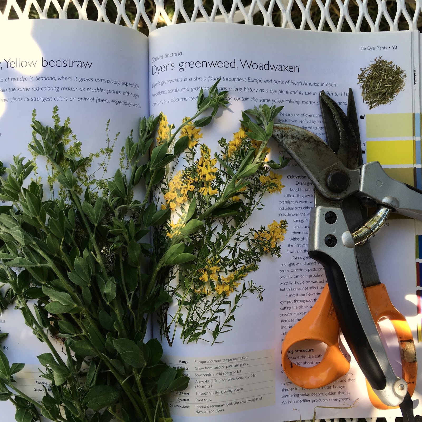 I've been wanting to do a textile project with non-native plants, so when I offered to help remove weeds, I asked if I could take away some of the plants we'd cleared from the site.   I was pleasantly surprised when the folks on the project met my query with enthusiasm.  I wielded a wicked-looking weed extractor for several hours, and left with a car full of French broom.