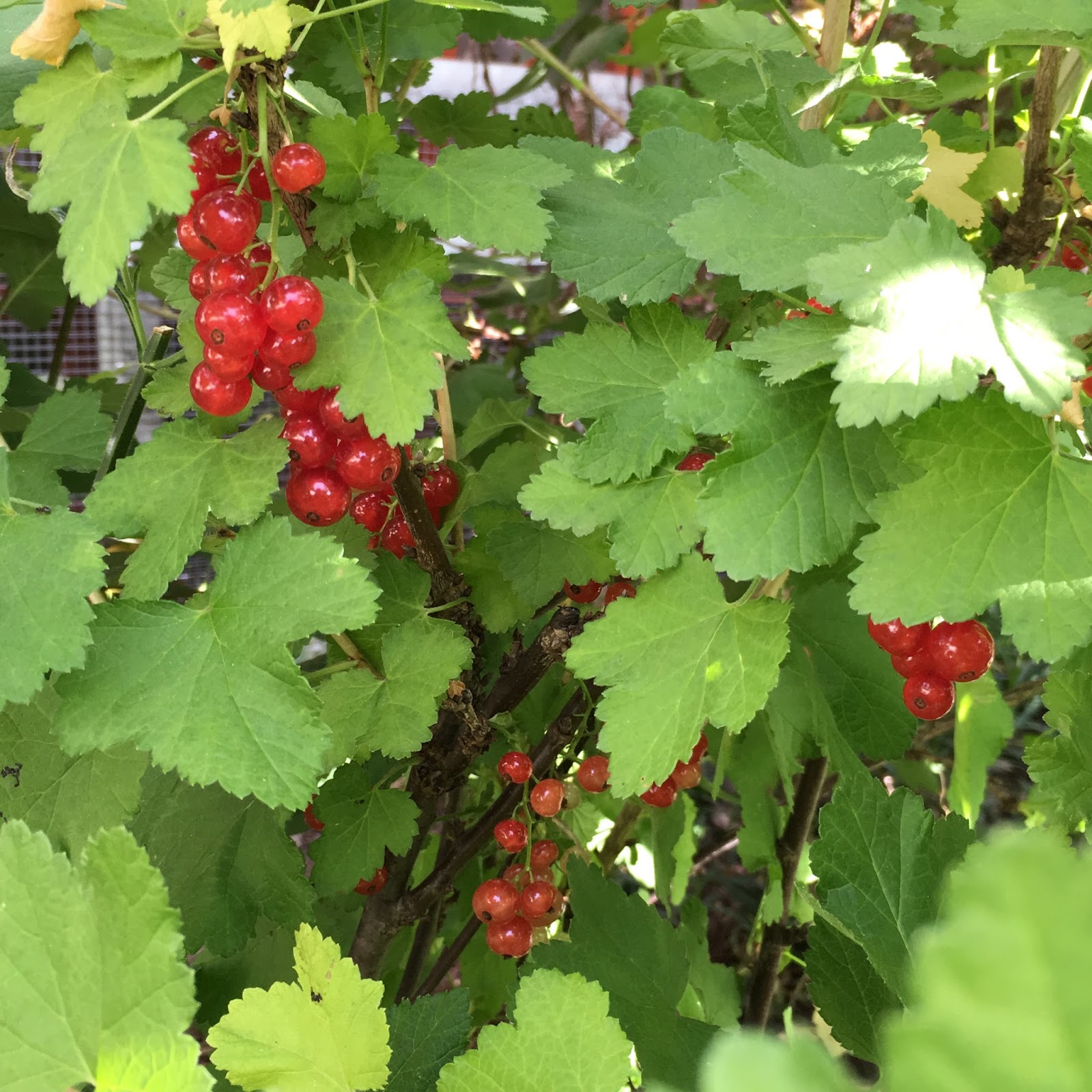 Our red currants are beautiful, but haven't fully ripened.  I didn't photograph our cherry.  It's a baby, and if we get a dozen fruits this year, I'll be thrilled.